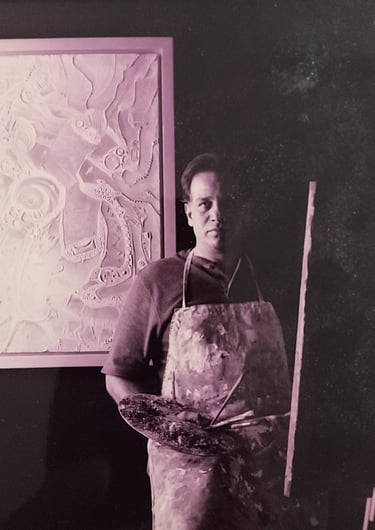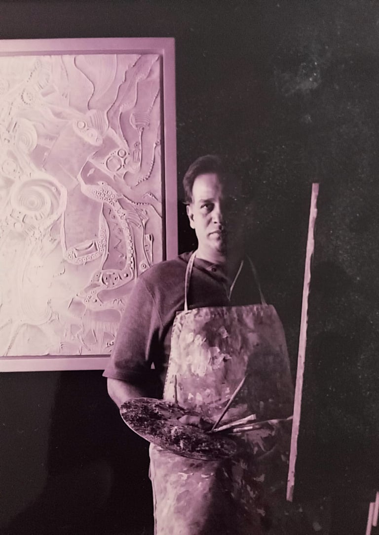 Javier López Pastrana (b. 1956, Mexico City) is a contemporary Mexican painter. His practice focuses on reincorporating the "CANAMAYTE" quadrivertex of ancient Mesoamerican cultures into fine arts, under a modern perspective. López Pastrana is the founder of Neo-Crotalic Art, launching his artistic manifesto in 2003, after a vast artistic exploration dating back to his studies at the Center for Plastic Research and Experimentation (CIEP) of the INBA in 1977.